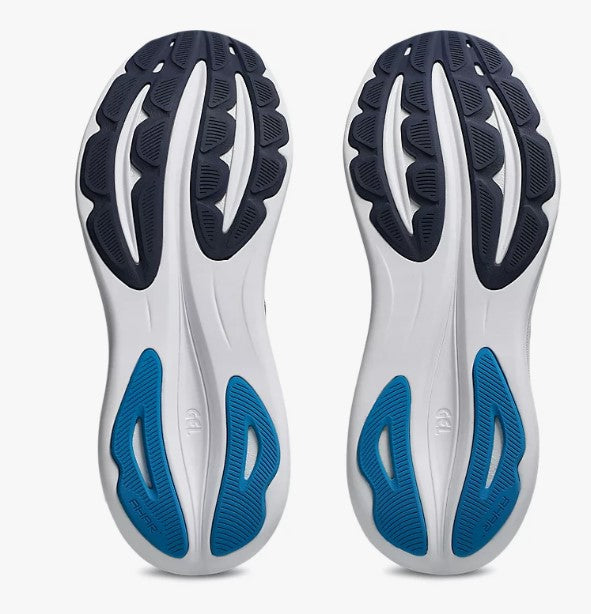 Per migliorare l'ammortizzazione sotto il piede, abbiamo aggiunto 2 mm di schiuma nell'intersuola. Questo materiale ammortizzante è composto dalle tecnologie FF BLAST e GEL, per un'esperienza di corsa morbida e confortevole.